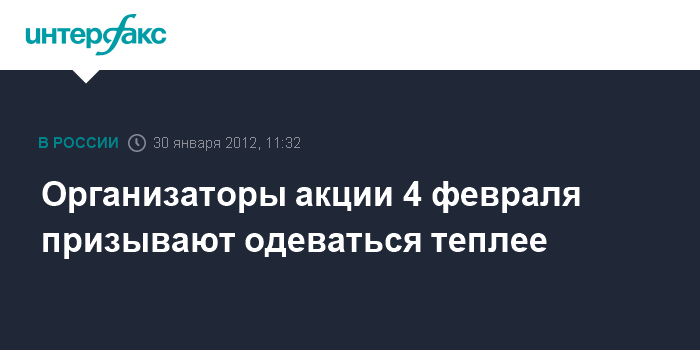 Москва. 30 января. INTERFAX.RU - Организаторы оппозиционной акции 4 февраля заявляют, что сделают все возможное, чтобы не заморозить ее участников и призывают не стесняться шапок-ушанок, варежек и валенок.