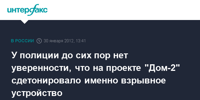 Москва. 30 января. INTERFAX.RU - Полиция выясняет, была ли бомбой фляга, взорвавшаяся на днях на телепроекте "Дом-2".