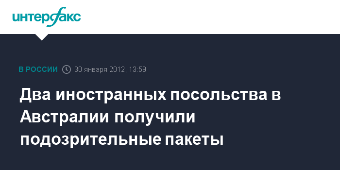 Два иностранных посольства в Австралии получили подозрительные пакеты