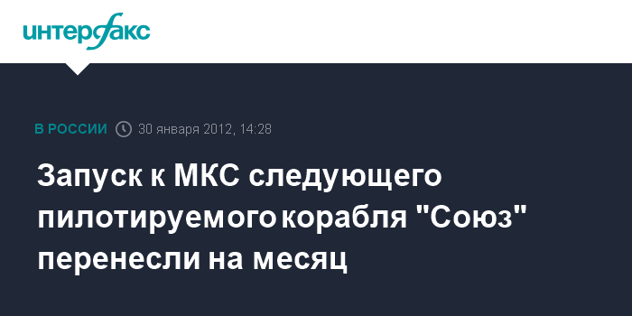 Запуск к МКС следующего пилотируемого корабля "Союз" перенесли на месяц