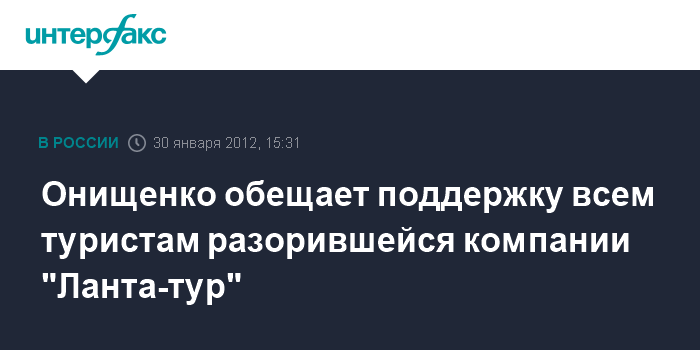 "Если граждане, после того как они обратятся к туроператорам, не получат удовлетворения своих требований, то мы адресуем их к 11 статье Гражданского кодекса - в суд. И в суде мы будем оказывать им всякую поддержку, в том числе вступая в процесс на стороне потерпевших", - отметил Онищенко.
