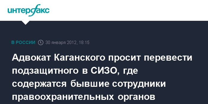 "Три дня назад Каганского перевели в пятый изолятор, где нет категории "бывший сотрудник". В администрации СИЗО нам сообщили, что раньше к ним бывших сотрудников правоохранительных органов не переводили. Опасаясь за его безопасность, администрации пришлось поместить Каганского в одиночную камеру", - рассказал "Интерфаксу" в понедельник адвокат Владимир Жеребенков, представляющий интересы М.Каганского.