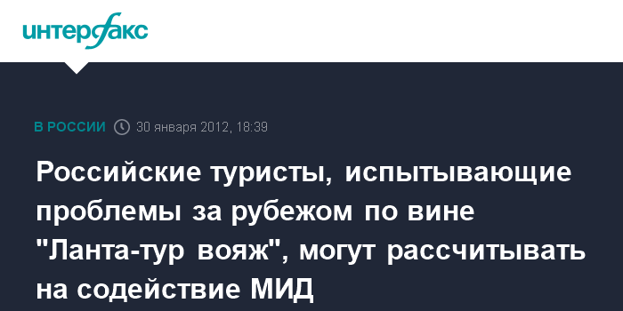 Российские туристы, испытывающие проблемы за рубежом по вине "Ланта-тур вояж", могут рассчитывать на содействие МИД