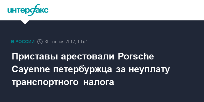 Приставы арестовали Porsche Cayenne петербуржца за неуплату транспортного налога