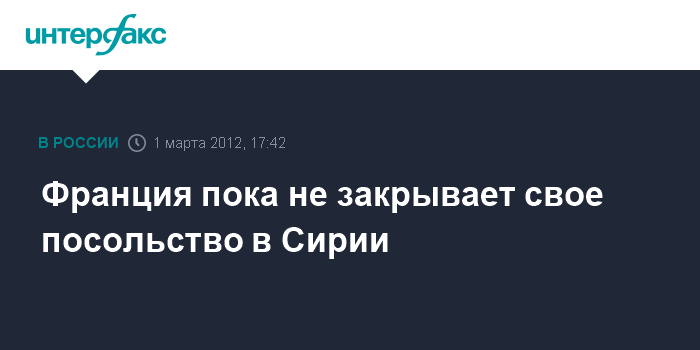 Париж. 1 марта. INTERFAX.RU - Франция оставляет свое посольство в Дамаске открытым, в то время как Великобритания уже заявила о закрытии своего посольства в связи с ухудшением ситуации в стране, сообщила пресс-служба французского МИД в четверг в официальном коммюнике.