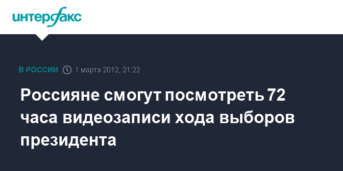 Москва. 1 марта. INTERFAX.RU - Граждане РФ смогут получить видеозаписи хода выборов президента РФ в объеме 72 часов, заявил заместитель министра связи и массовых коммуникаций Илья Массух на заседании общественно-экспертного совета по обсуждению вопросов финансирования и реализации проекта по установке веб-камер на избирательных участках.