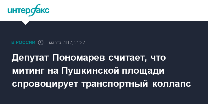 Депутат Пономарев считает, что митинг на Пушкинской площади спровоцирует транспортный коллапс