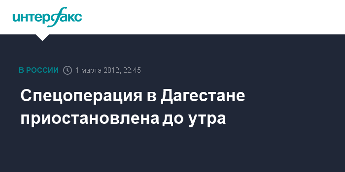 Махачкала. 1 марта. INTERFAX.RU - Активная фаза спецоперации в селении Муцалаул Хасавюртовского района Дагестана приостановлена до утра, сообщил "Интерфаксу" источник в правоохранительных органах республики.