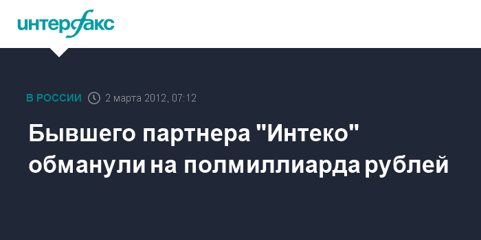 Бывшего партнера "Интеко" обманули на полмиллиарда рублей