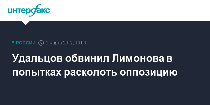 Удальцов обвинил Лимонова в попытках расколоть оппозицию