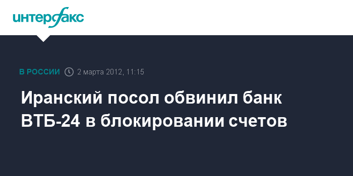 Иранский посол обвинил банк ВТБ-24 в блокировании счетов