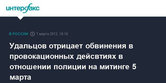 Удальцов отрицает обвинения в провокационных дейсвтиях в отношении полиции на митинге 5 марта