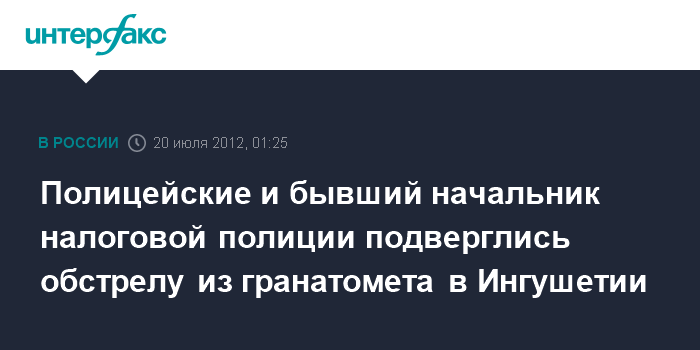 Полицейские и бывший начальник налоговой полиции подверглись обстрелу из гранатомета в Ингушетии
