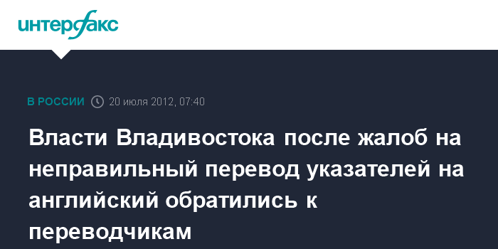 Власти Владивостока после жалоб на неправильный перевод указателей на английский обратились к переводчикам