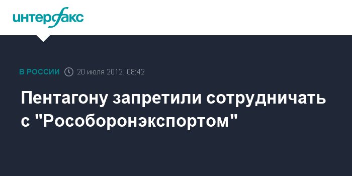Пентагону запретили сотрудничать с "Рособоронэкспортом"