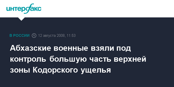 Москва. 12 августа. INTERFAX.RU - Абхазские спецподразделения контролируют большую часть верхней зоны Кодорского ущелья, сообщает корреспондент "Интерфакса" с места события.