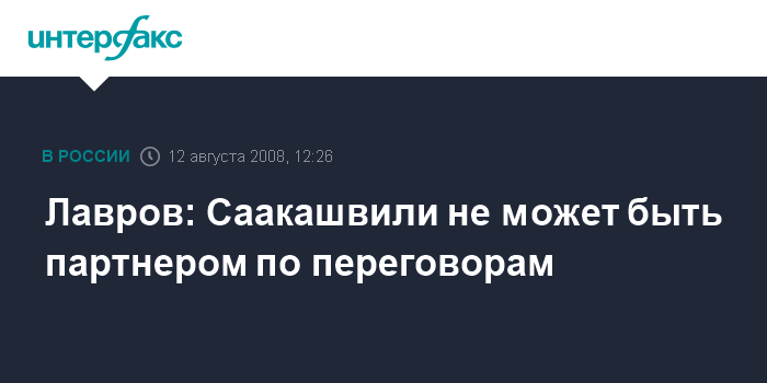 Москва. 10 августа. INTERFAX.RU - Глава МИД РФ Сергей Лавров подтвердил позицию Москвы, согласно которой нынешний президент Грузии не может быть партнером по мирным переговорам.
