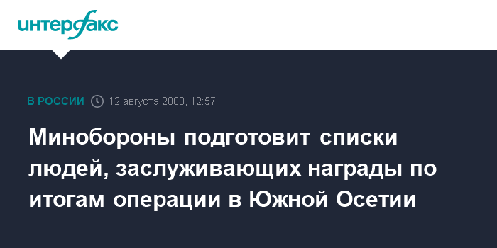 Минобороны подготовит списки людей, заслуживающих награды по итогам операции в Южной Осетии