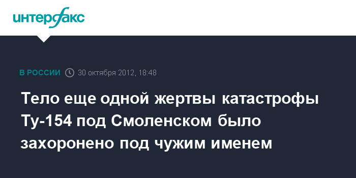 Тело еще одной жертвы катастрофы Ту-154 под Смоленском было захоронено под чужим именем