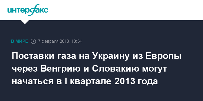 Поставки газа на Украину из Европы через Венгрию и Словакию могут начаться в I квартале 2013 года