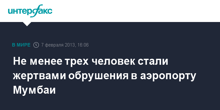Дели. 7 февраля. INTERFAX.RU - По меньшей мере три человека погибли и еще шесть пострадали в результате обрушения эстакады в Международном аэропорту имени Чатрапати Шиваджи в индийском городе Мумбаи, сообщает в четверг местная полиция.