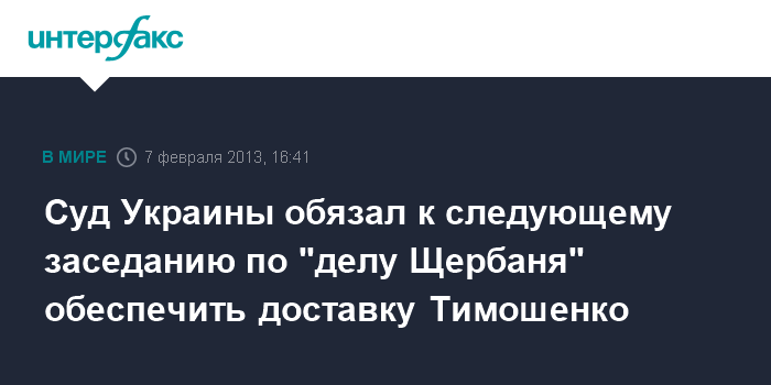 Суд Украины обязал к следующему заседанию по "делу Щербаня" обеспечить доставку Тимошенко