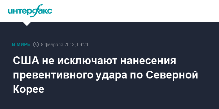 Вашингтон. 8 февраля. ИНТЕРФАКС - Соединенные Штаты не снимают с повестки дня возможность нанесения упреждающего удара по КНДР, заявила официальный представитель госдепартамента США Виктория Нуланд.