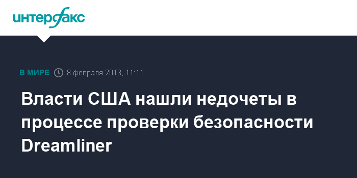 Власти США нашли недочеты в процессе проверки безопасности Dreamliner