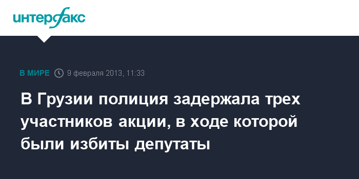 Тбилиси. 9 февраля. INTERFAX.RU - Трое участников прошедшей в пятницу акции протеста у здания Национальной библиотеки в Тбилиси, в ходе которой были избиты несколько депутатов парламента от оппозиции, были задержаны полицией и в настоящее время находятся в следственном изоляторе.