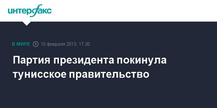 Тунис. 10 февраля. INTERFAX.RU - Партия президента Туниса Монсефа Марзуки "Конгресс за республику" вышла из состава правительства, сообщили ее представители в воскресенье. По их словам, речь идет об уходе трех министров, входивших в "Конгресс за республику".