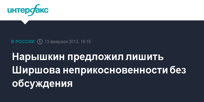 Нарышкин предложил лишить Ширшова неприкосновенности без обсуждения