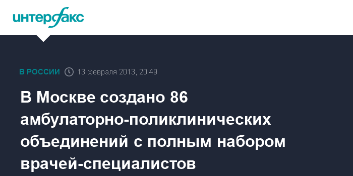 В Москве создано 86 амбулаторно-поликлинических объединений с полным набором врачей-специалистов