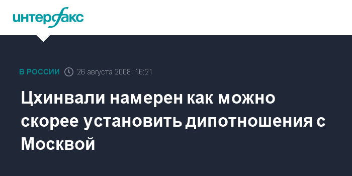 Москва. 26 августа. INTERFAX.RU - Южная Осетия намерена в ближайшее время установить дипломатические отношения с Российской Федерацией. "Сейчас есть возможность уже реально говорить о политических отношениях с Российской Федерацией. Конечно, мы будем устанавливать дипломатические отношения", - сказал во вторник "Интерфаксу" и.о. главы МИД Южной Осетии Мурат Джиоев.