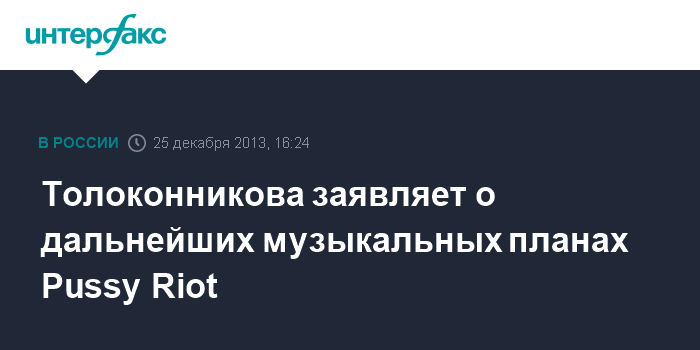 Москва. 25 декабря. INTERFAX.RU - Надежда Толоконникова уверена, что панк-проект Pussy Riot стал жить самостоятельной жизнью.