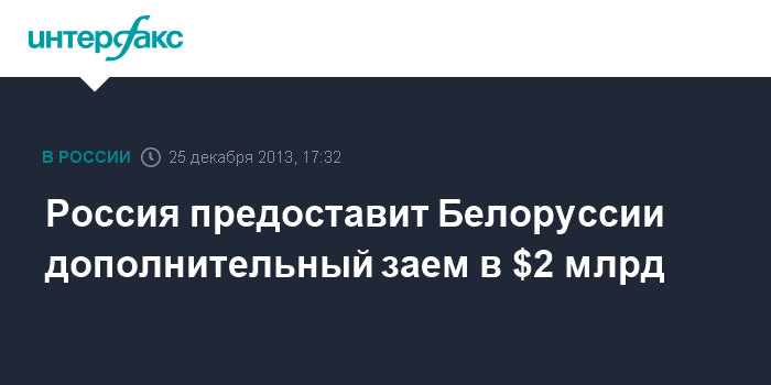 Москва. 25 декабря. INTERFAX.RU - Россия выделит Белоруссии $2 млрд заемных средств в качестве дополнительной материальной помощи в 2014 г., сообщил президент РФ Владимир Путин.