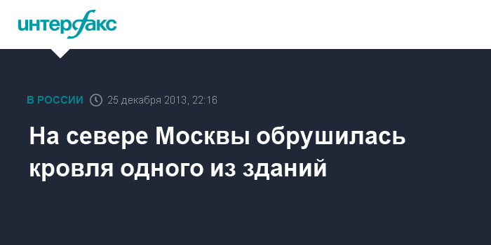 Москва. 25 декабря. INTERFAX.RU - Обрушение кровли, по уточненным данным, произошло в здании, принадлежащем ФСКН на севере Москвы, сообщил "Интерфаксу" источник в правоохранительных органах.