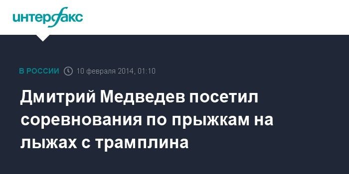 Красная Поляна. 10 февраля. ИНТЕРФАКС - Премьер-министр РФ Дмитрий Медведев посетил соревнования по прыжкам на лыжах с трамплина (личное первенство).