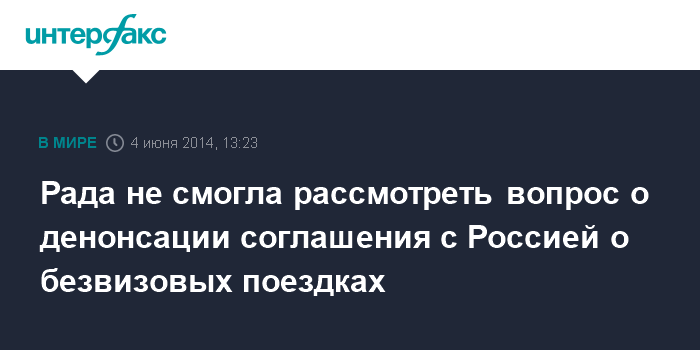 Рада не смогла рассмотреть вопрос о денонсации соглашения с Россией о безвизовых поездках