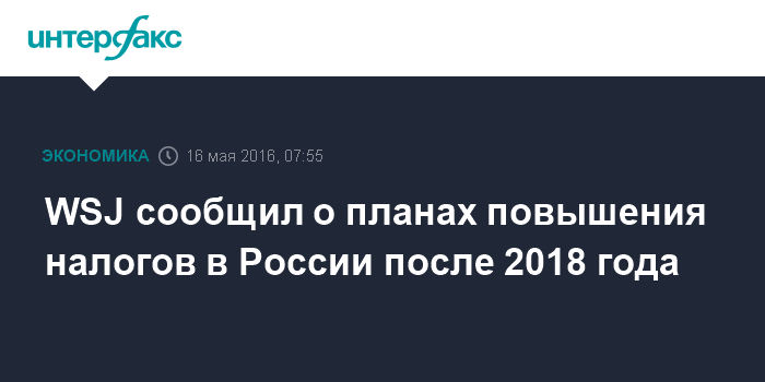 WSJ сообщил о планах повышения налогов в России после 2018 года