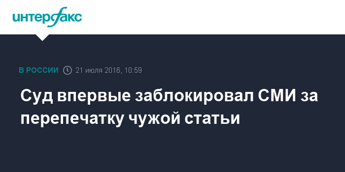 Суд впервые заблокировал СМИ за перепечатку чужой статьи