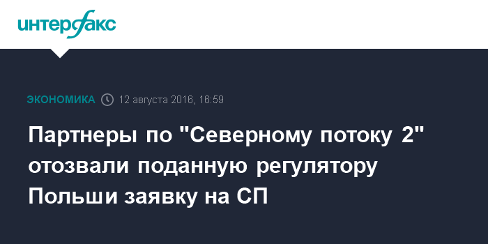 Партнеры по "Северному потоку 2" отозвали поданную регулятору Польши заявку на СП