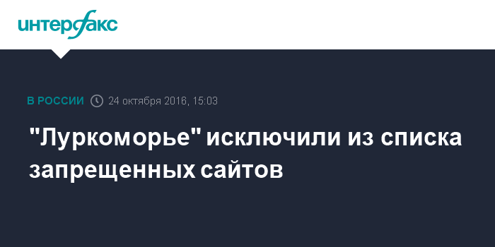 Москва. 24 октября. INTERFAX.RU - Интернет-энциклопедию "Луркоморье" исключили из списка запрещенных сайтов. Об этом сообщается на сайте организации "Роскомсвобода".