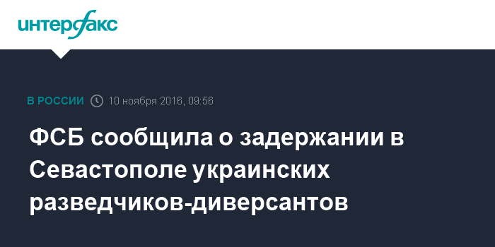 "ФСБ 9 ноября в Севастополе задержаны члены диверсионно-террористической группы Главного управления разведки Минобороны Украины, планировавшие совершение диверсионных акций на объектах военной инфраструктуры и жизнеобеспечения полуострова Крым", - отметили в ЦОС.