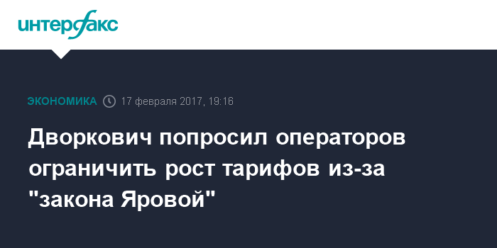 Москва. 17 февраля. INTERFAX.RU - Вице-премьер Аркадий Дворкович попросил операторов в результате реализации положений "закона Яровой" не допустить повышения