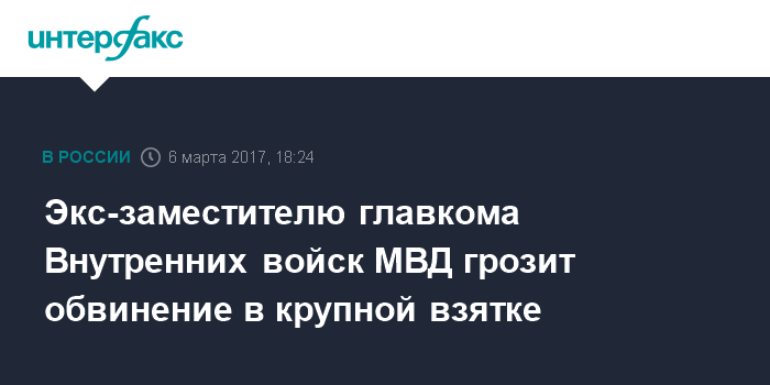 Экс-заместителю главкома Внутренних войск МВД грозит обвинение в крупной взятке