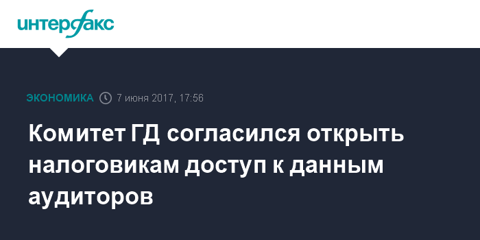 Москва. 7 июня. INTERFAX.RU - Комитет Госдумы по бюджету одобрил законопроект, по которому налоговые органы могут получить доступ к данным финансовых проверяющих, сообщает "Коммерсант".