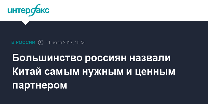 Большинство россиян назвали Китай самым нужным и ценным партнером