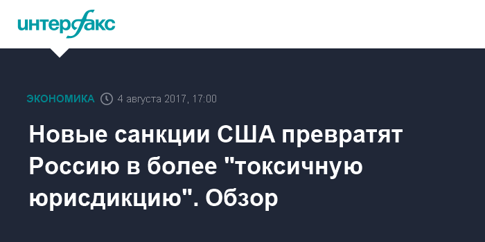 Москва. 4 августа. INTERFAX.RU - Новые санкции США превращают Россию во все более "токсичную юрисдикцию" для иностранных кредиторов и инвесторов, что ограничивает финансирование проектов и получение современных технологий, однако рынок уже привык к ограничениям и новые санкции вряд ли способны изменить статус-кво, считают юристы.