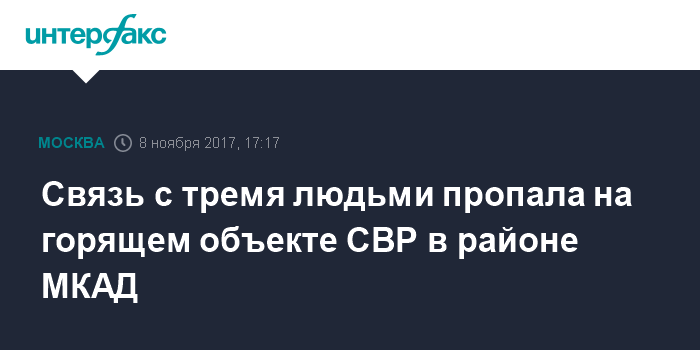 Москва. 8 ноября. INTERFAX.RU - Спасатели не могут выйти на связь с тремя сотрудниками, предположительно находящимися в здании на закрытом объекте в Москве, где произошел пожар в кабельном тоннеле, сообщил "Интерфаксу" осведомленный источник.