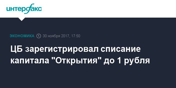 ЦБ зарегистрировал списание капитала "Открытия" до 1 рубля